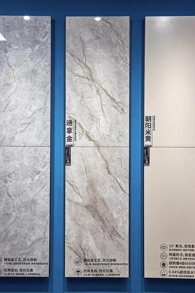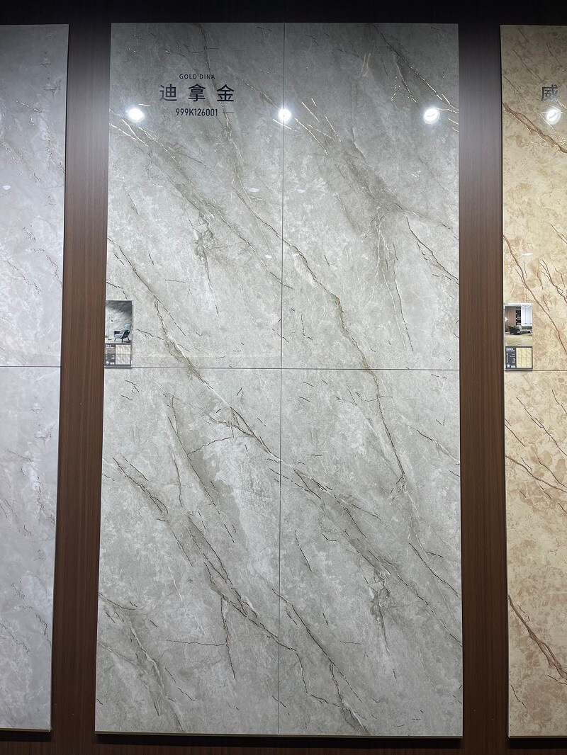 600*1200 full-body marble tiles with gold veins, featuring flowing golden patterns that exude luxury. Made with full-body craftsmanship, they are wear-resistant and practical, perfect for living room feature walls and other spaces, effortlessly creating a