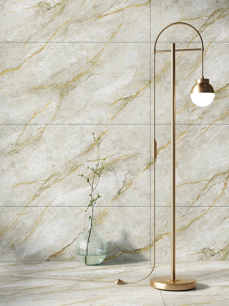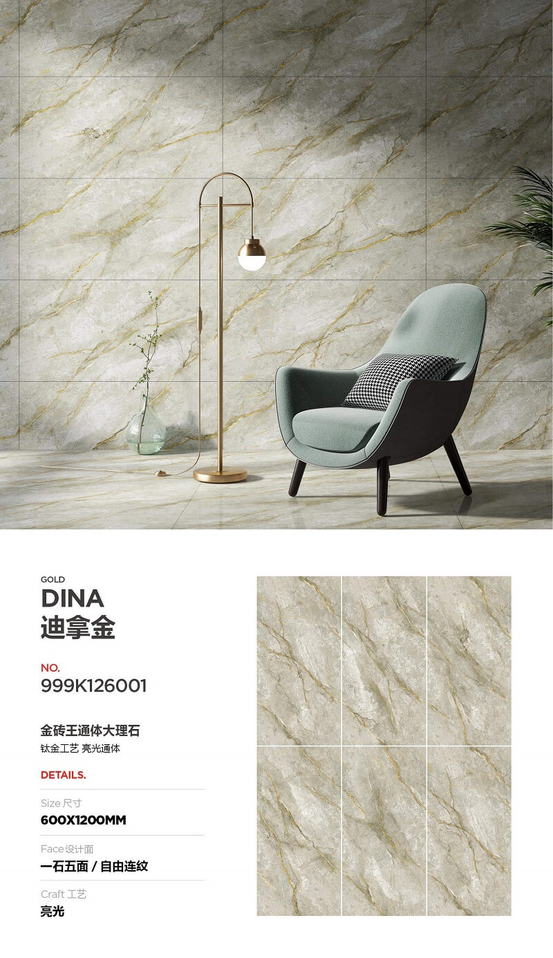 600*1200 full-body marble tiles with gold veins, featuring flowing golden patterns that exude luxury. Made with full-body craftsmanship, they are wear-resistant and practical, perfect for living room feature walls and other spaces, effortlessly creating a